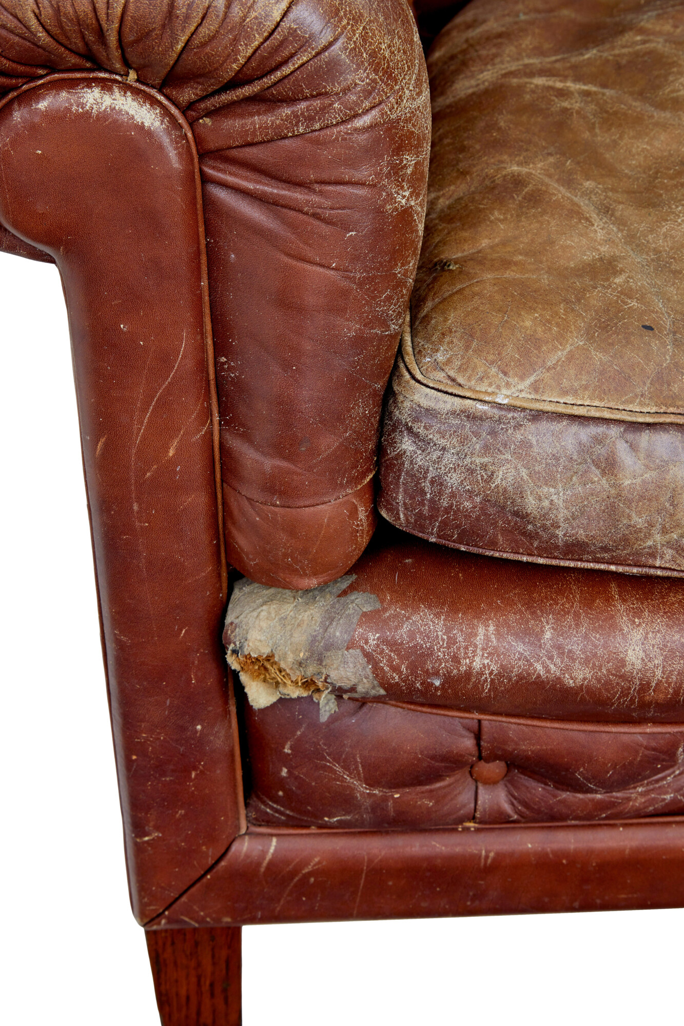 OBVIOUS FADING, SPLITS AND SEPERATION TO SOME SEAMS, 1 AREA OF LOSS BELOW 1 SEAT TO LEATHER. SEAT CUSHIONS NOT A COMPLETE COLOUR MATCH THE THE MAIN BODY AND LIKELY TO BE REPLACEMENTS. THE CHAIRS STILL FUNCTION WELL FOR THAT LIVED IN LOOK, OR AN IDEAL CANDIDATE FOR RE-COVERING.