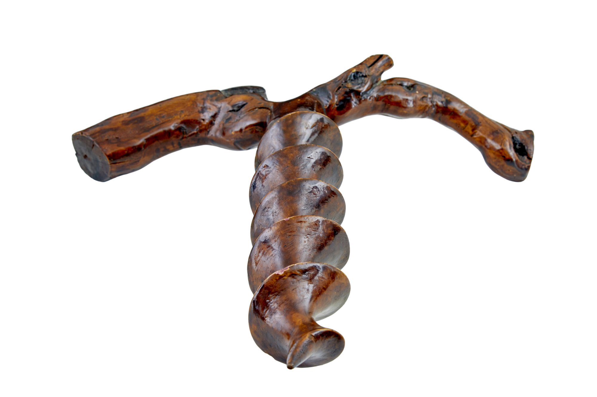 NATURAL ROOT HANDLE WITH A HAND CRAFTED SCREW.