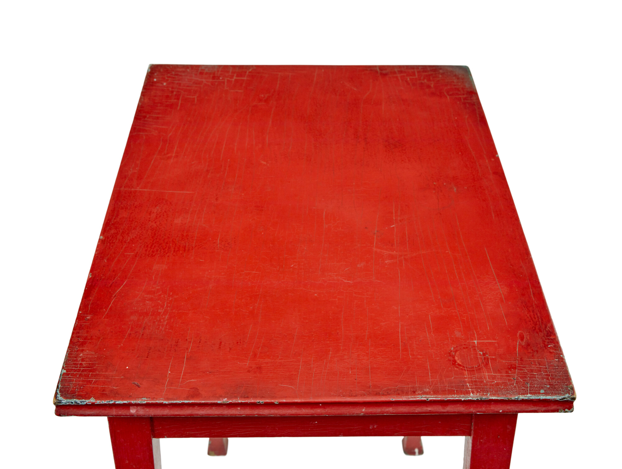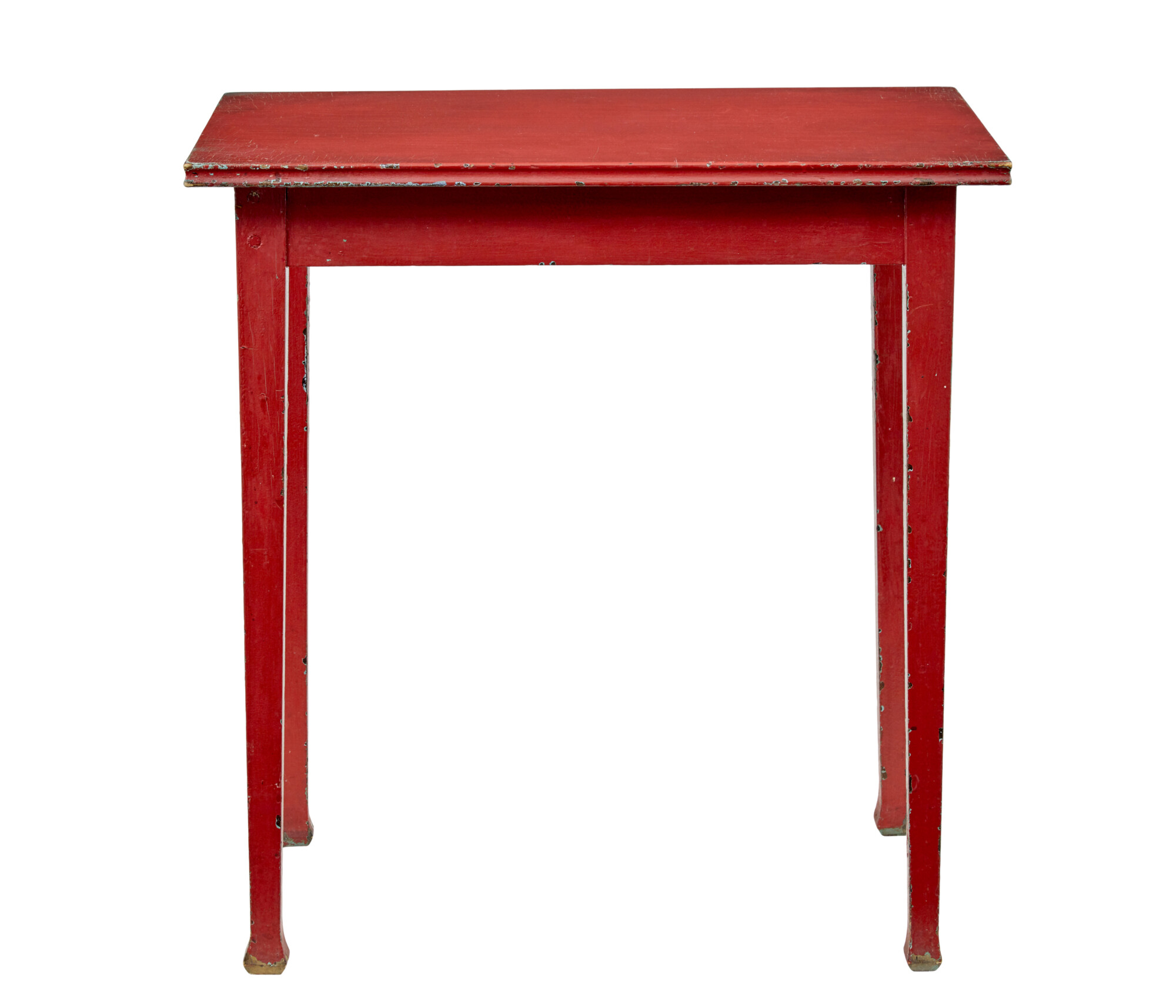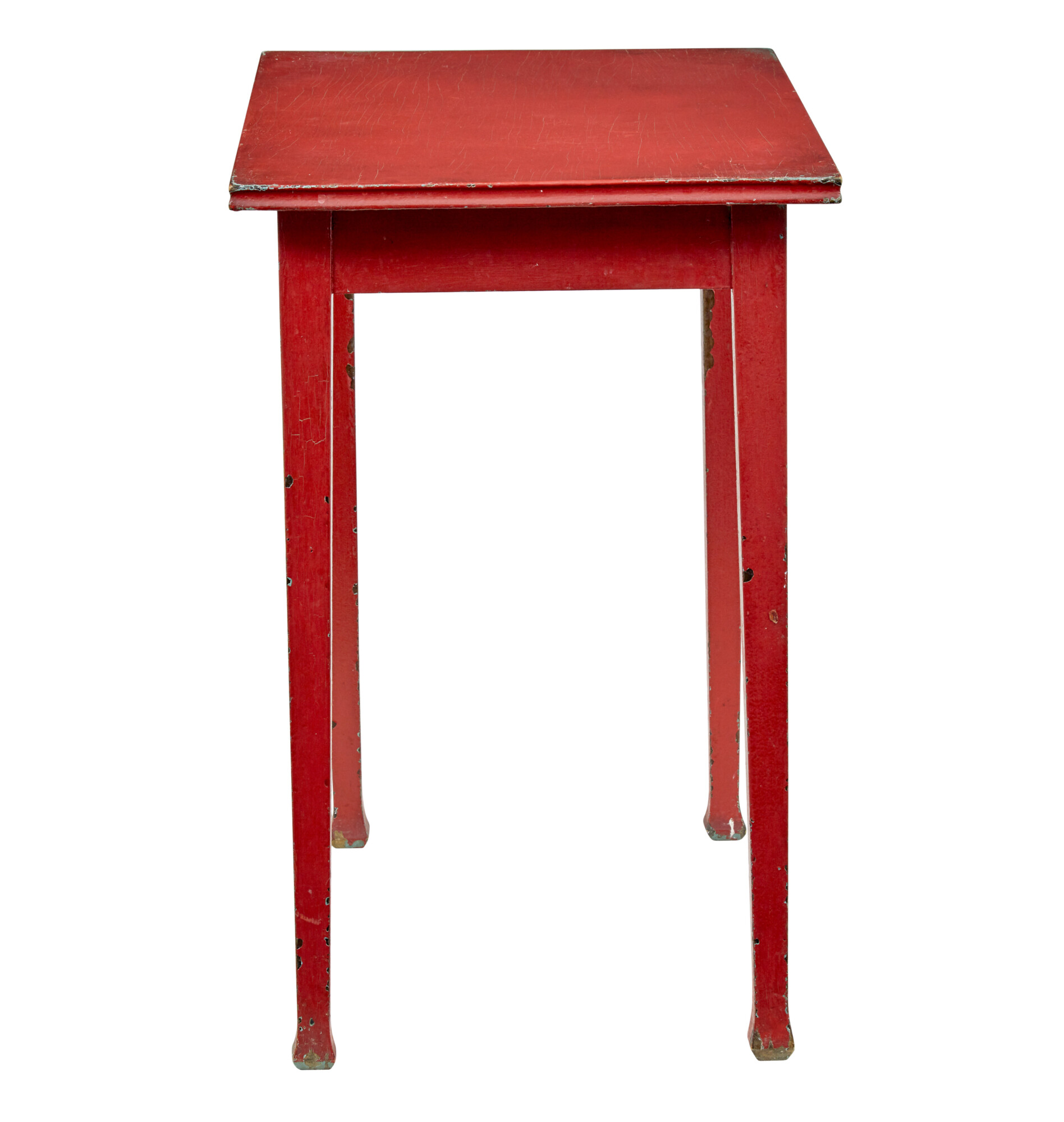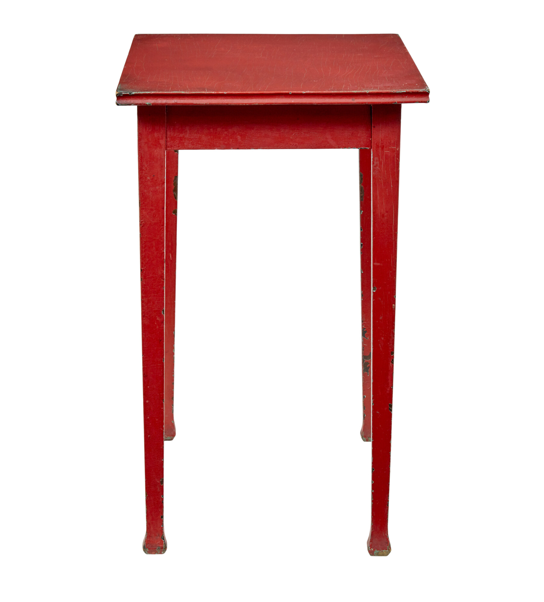 LIKELY HAVE BEEN PAINTED IN THE EARLY 20TH CENTURY DUE TO THE CRAQUELURE TO THE TOP SURFACE, WHICH NATURALLY FORMS OVER TIME. RECTANGULAR TOP WITH MOULDED EDGE, STANDING ON 4 TAPERING LEGS WITH SPADED FOOT.