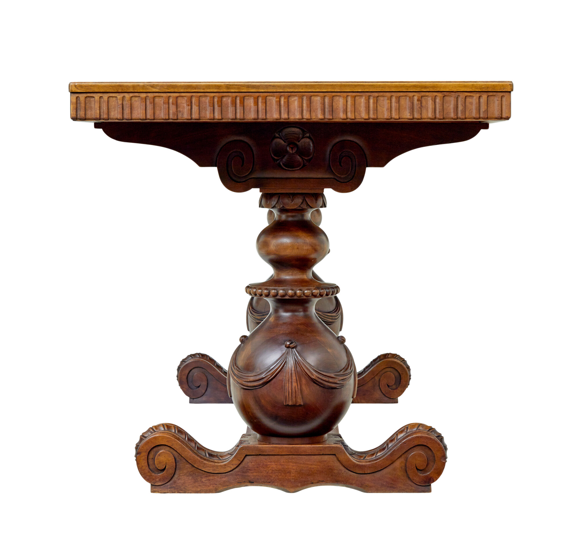 HERE WE OFFER A BEAUTIFUL TABLE WITH NEO CLASSICAL/ITALIAN INSPIRATION, WHICH HAS BEEN MADE IN WALNUT.