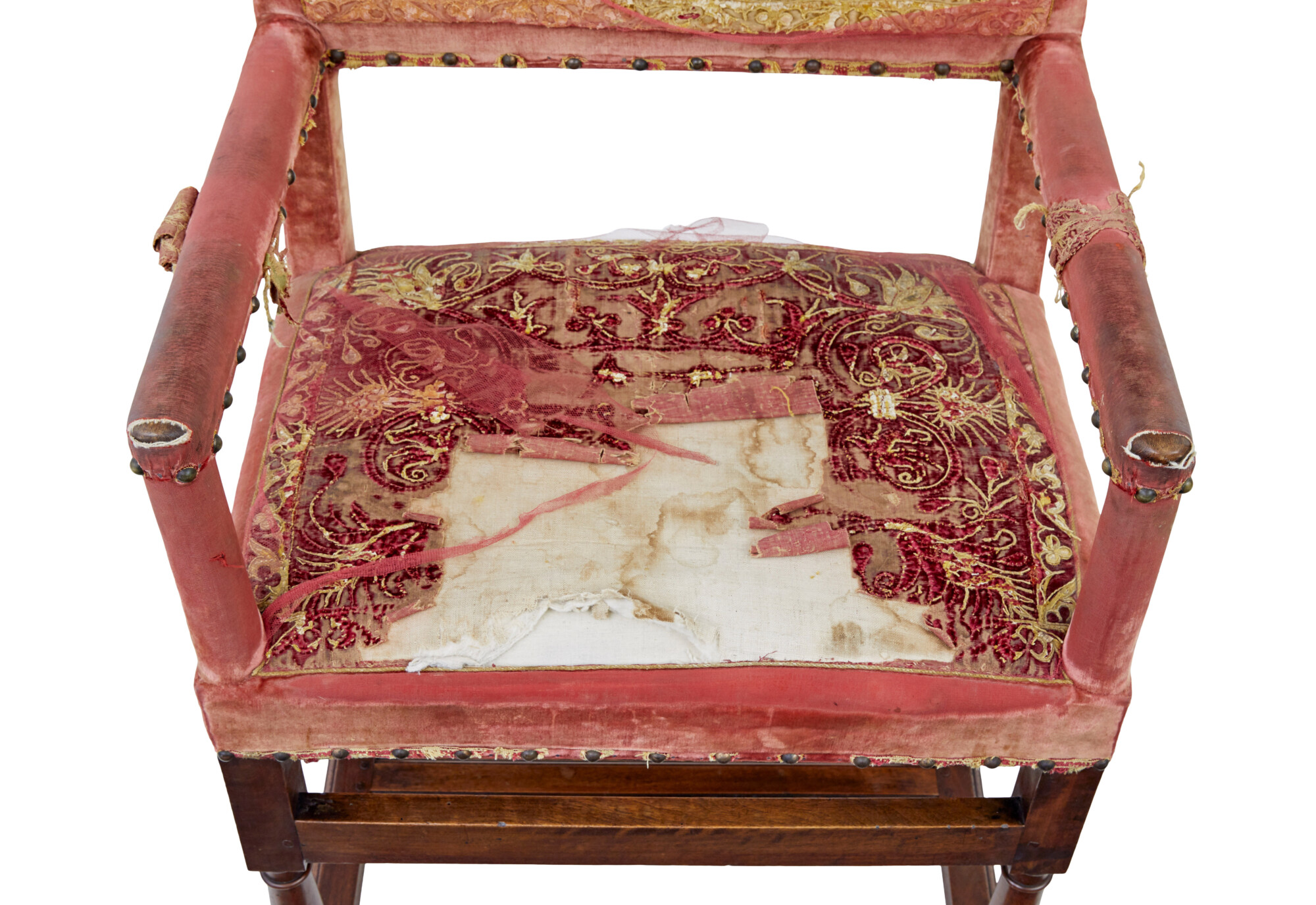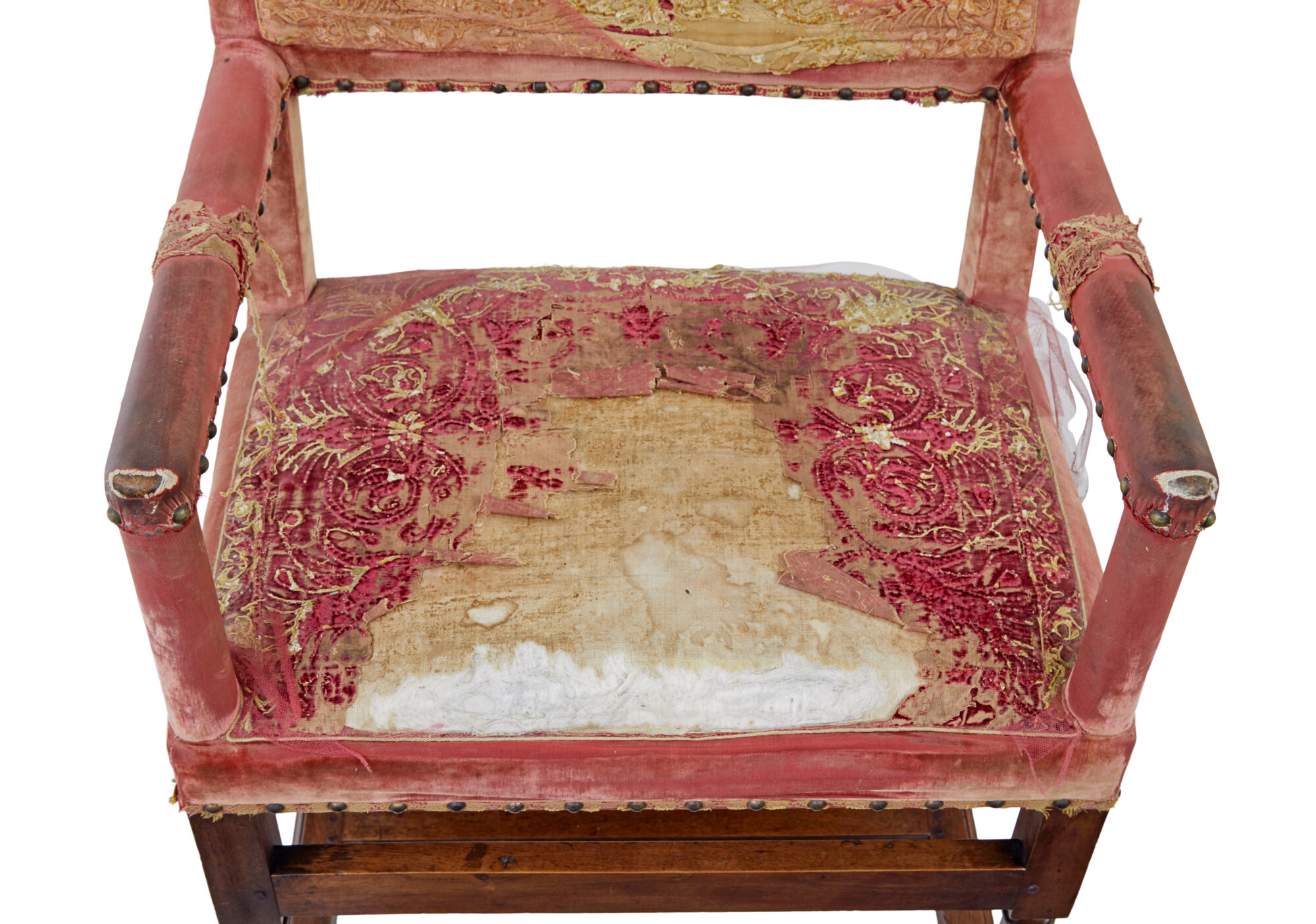 THE MAIN FEATURE OF THIS CHAIRS IS THAT THEY ARE PRESENTED IN THE ORIGINAL EMBROIDED FABRIC AND STUD WORK.