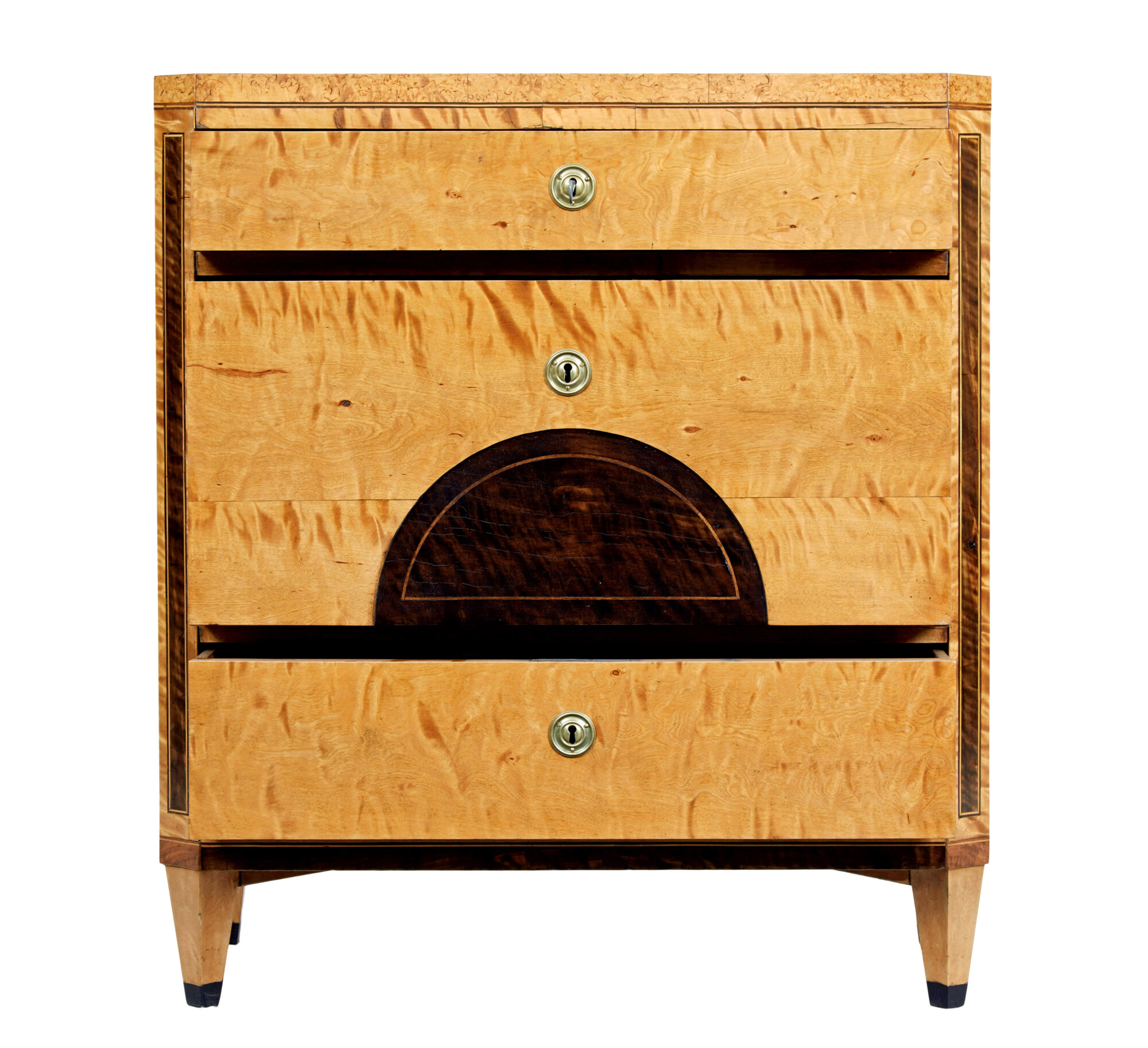 SWEDISH 19TH CENTURY INLAID BIRCH CHEST OF DRAWERS CIRCA 1830.