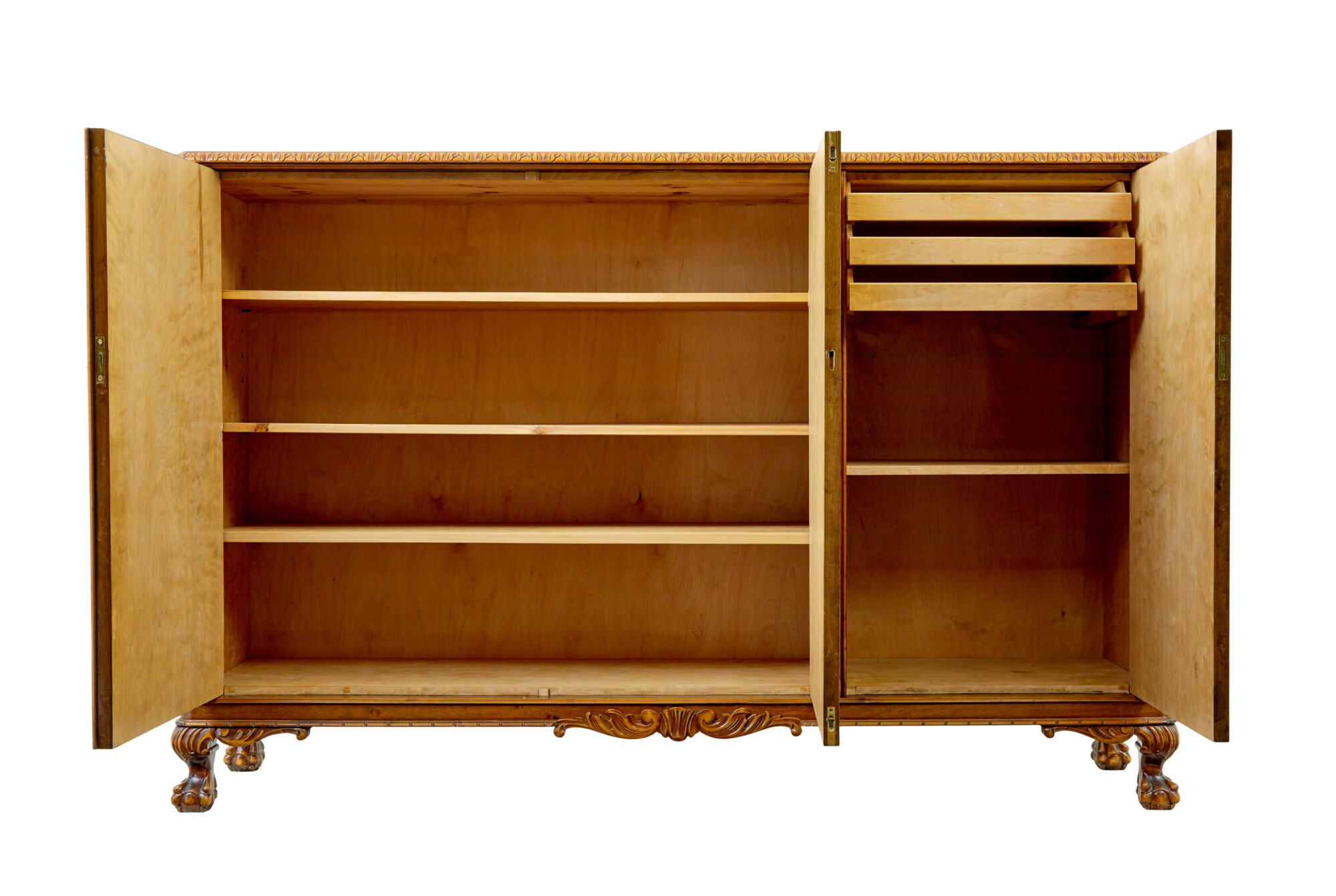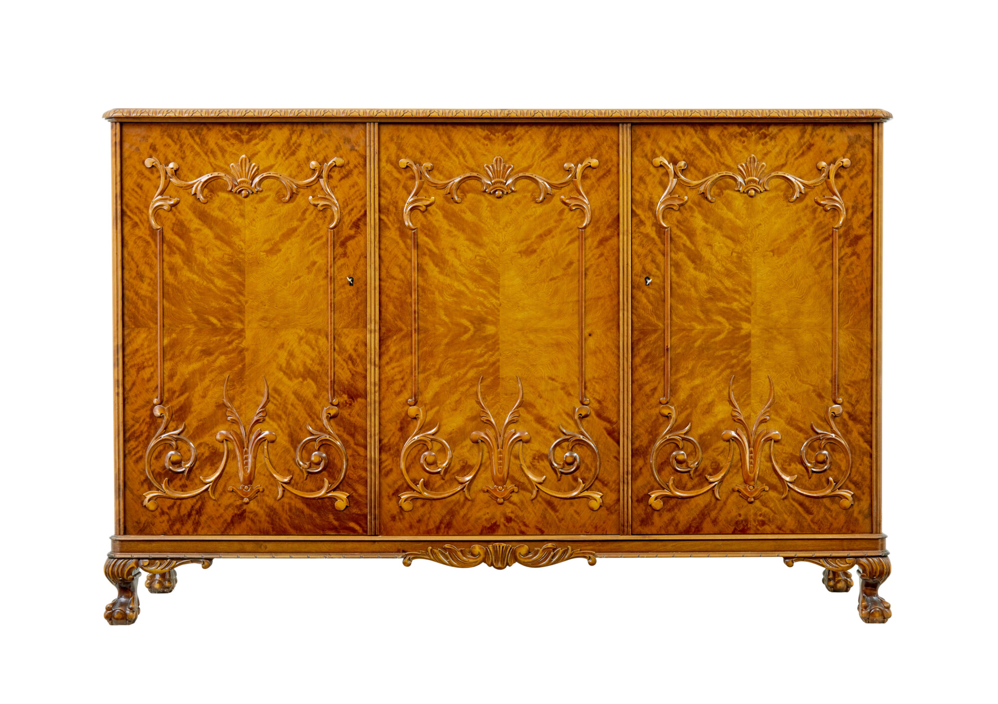 GOOD QUALITY SCANDINAVIAN BIRCH SIDEBOARD IN THE ROCOCO TASTE CIRCA 1940.