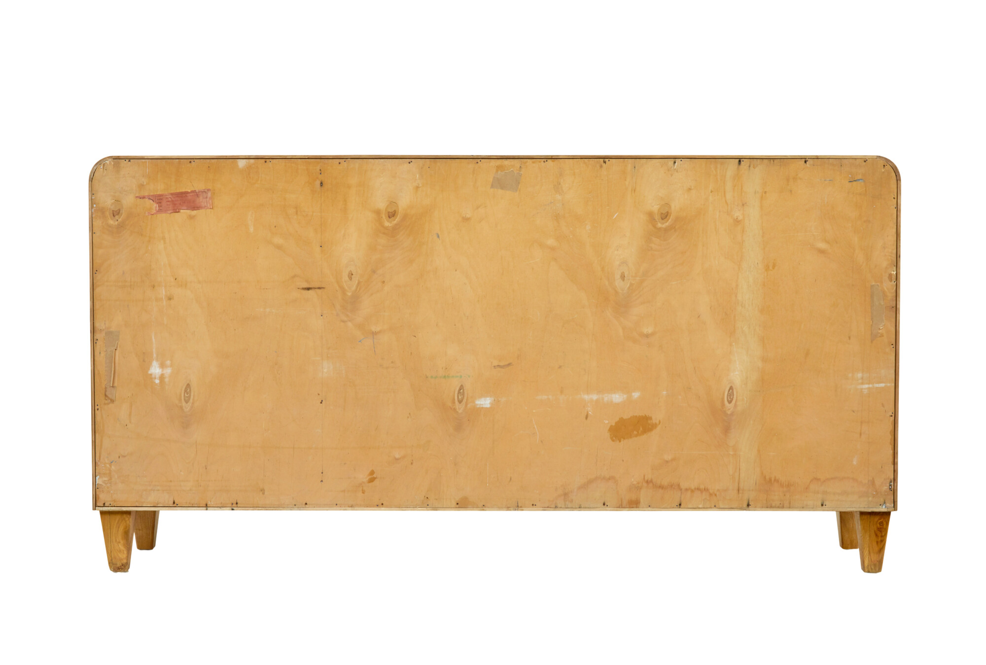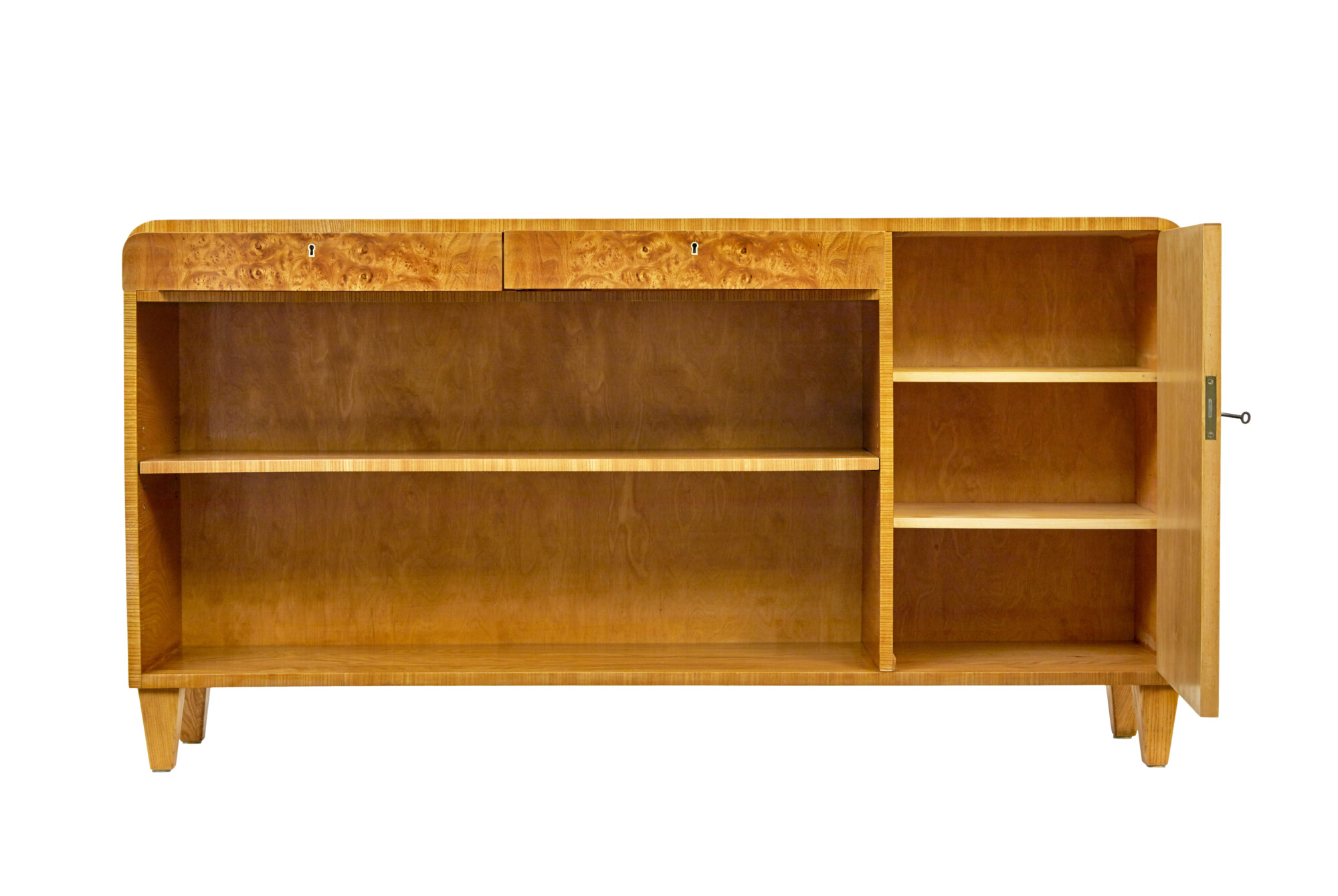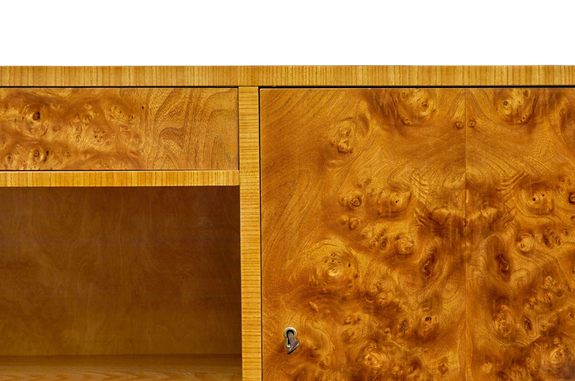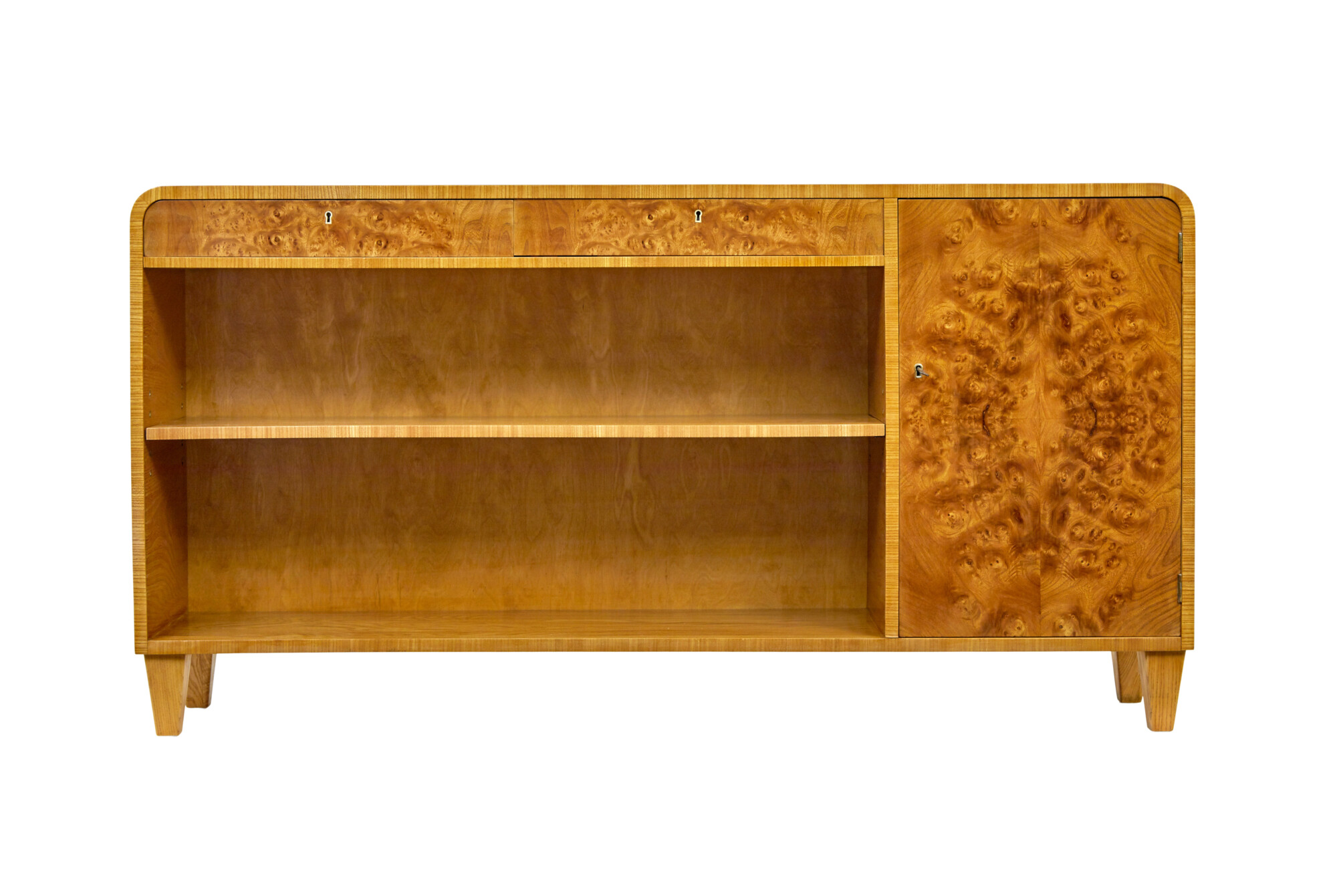 SWEDISH MID CENTURY BURR ELM LOW OPEN BOOKCASE CIRCA 1950.