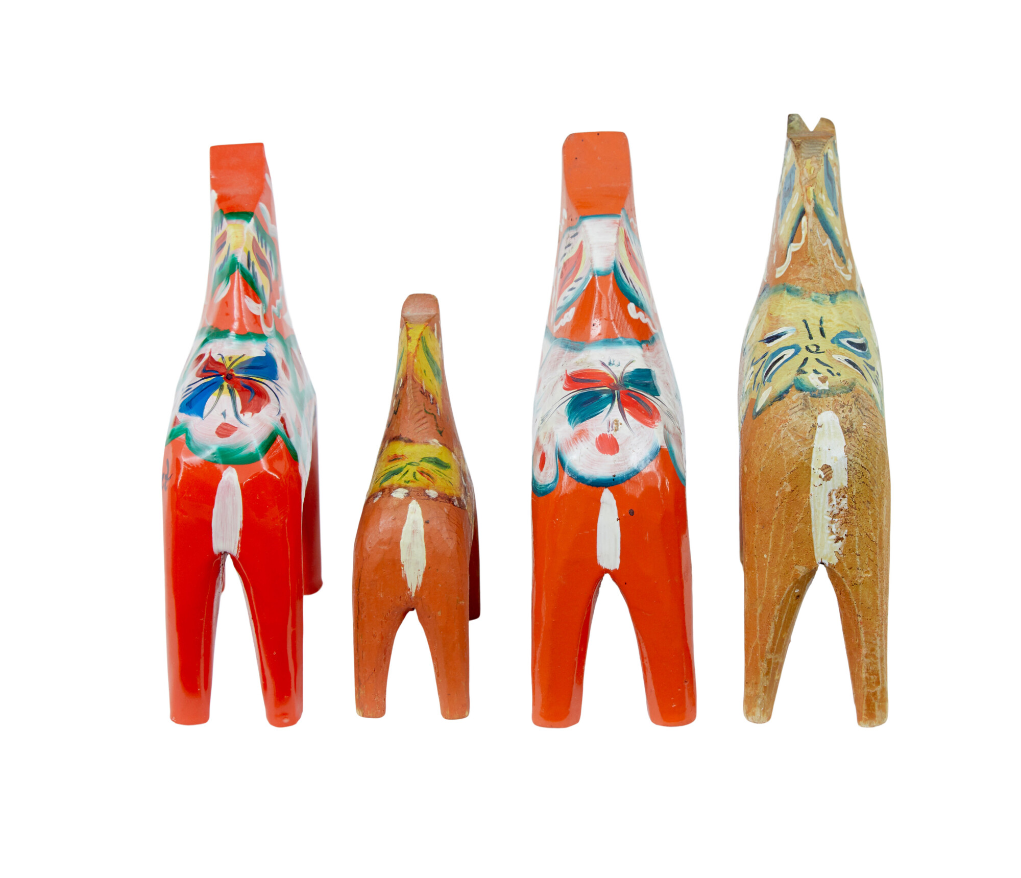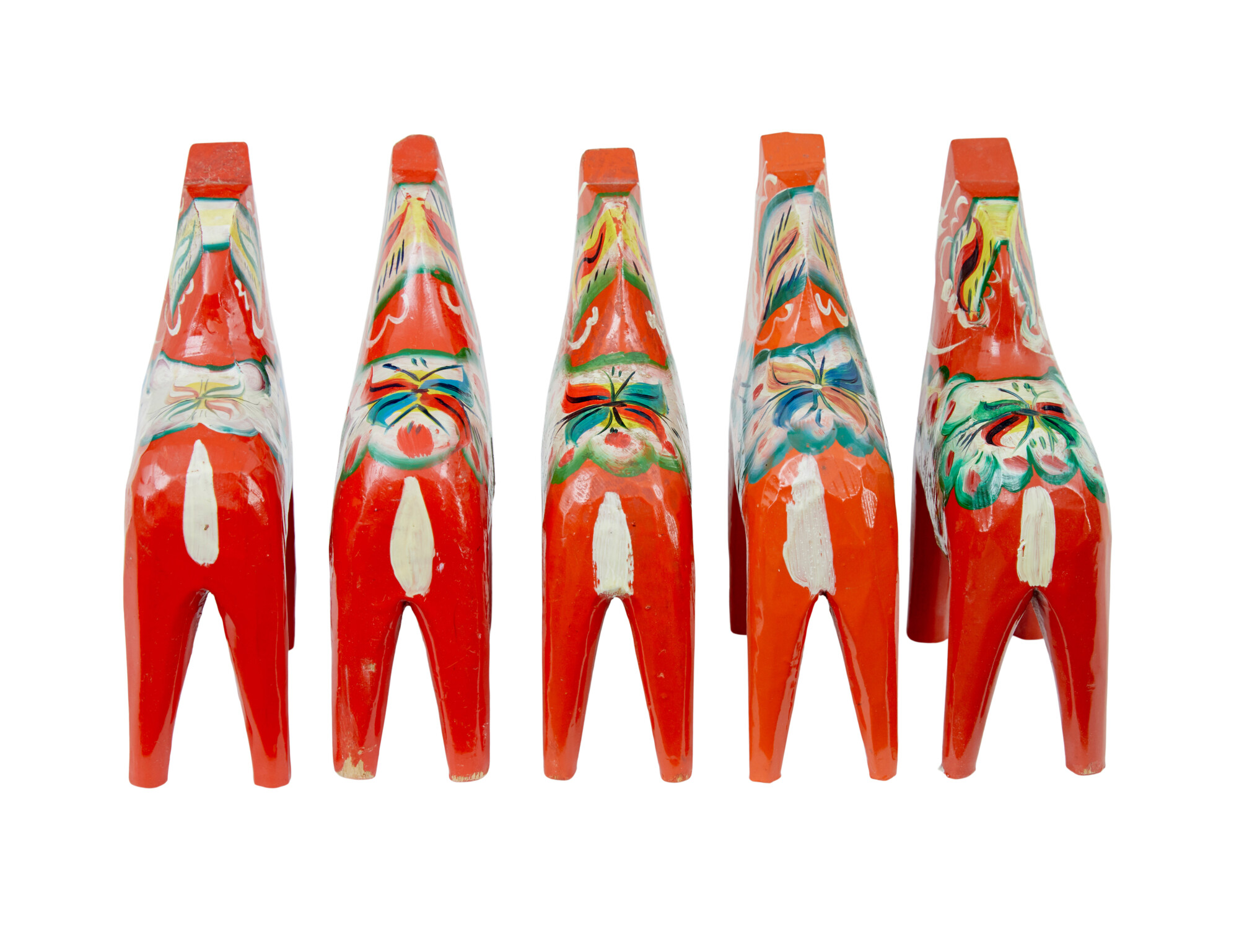 SWEDISH SET OF 12 TRADITIONAL HAND PAINTED DALA HORSES FROM 1900-1989.